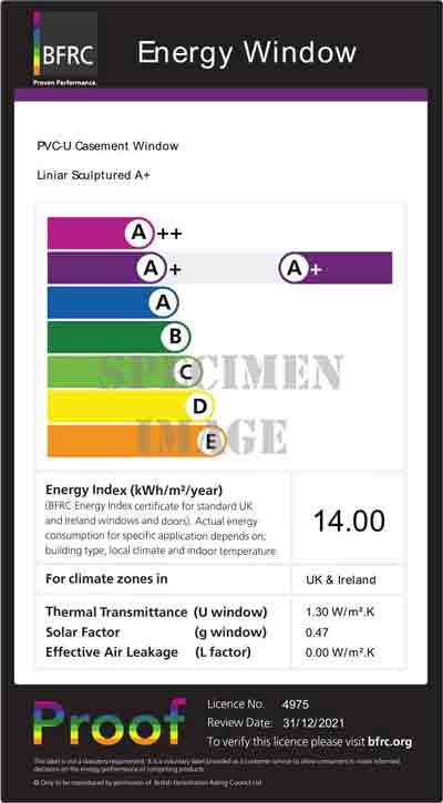 This made to measure A energy rated flush sash upvc window is supplied with soft coat low E 28mm glass acheiving an outstanding low 1.3 W/m2K u value. The 70mm fully sculptured thermal efficient multi chamber frame system has ultra slim sight lines, clean and modern aesthetics with low maintenance and is guaranteed not to discolour, warp or peel and internally beaded for maximum security. Compliant with Part L Building Regulations.